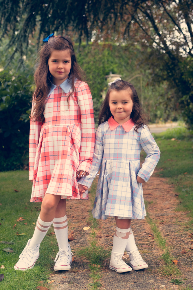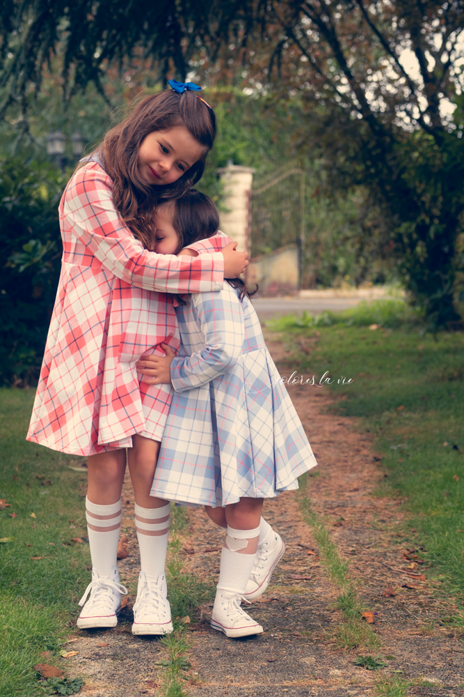 Des Laura…des Laura… des Laura!!! Quoi de mieux que le tartan pour des Laura! Mes cocottes sont coordonnées, j’avoue que je trouve ça trop chou et que j’en profite le temps que ça leur plait! Vous avez vu ma Vivi ? On a l’impression d’un petit ange! Pour la petite histoire 2 minutes avant la photo elle grimpait aux arbres!