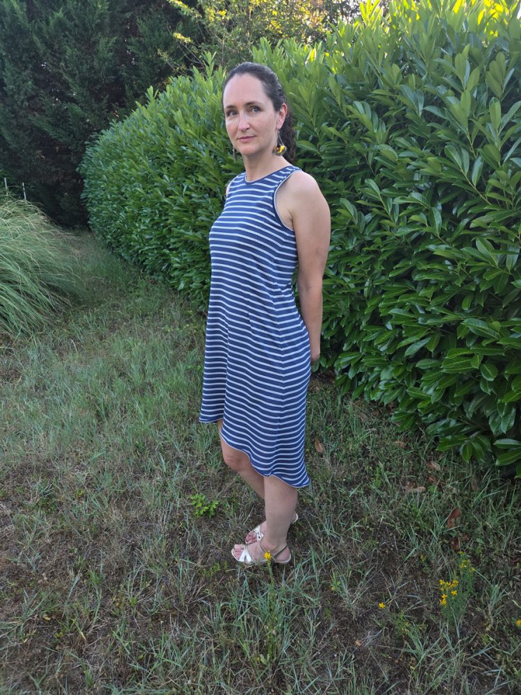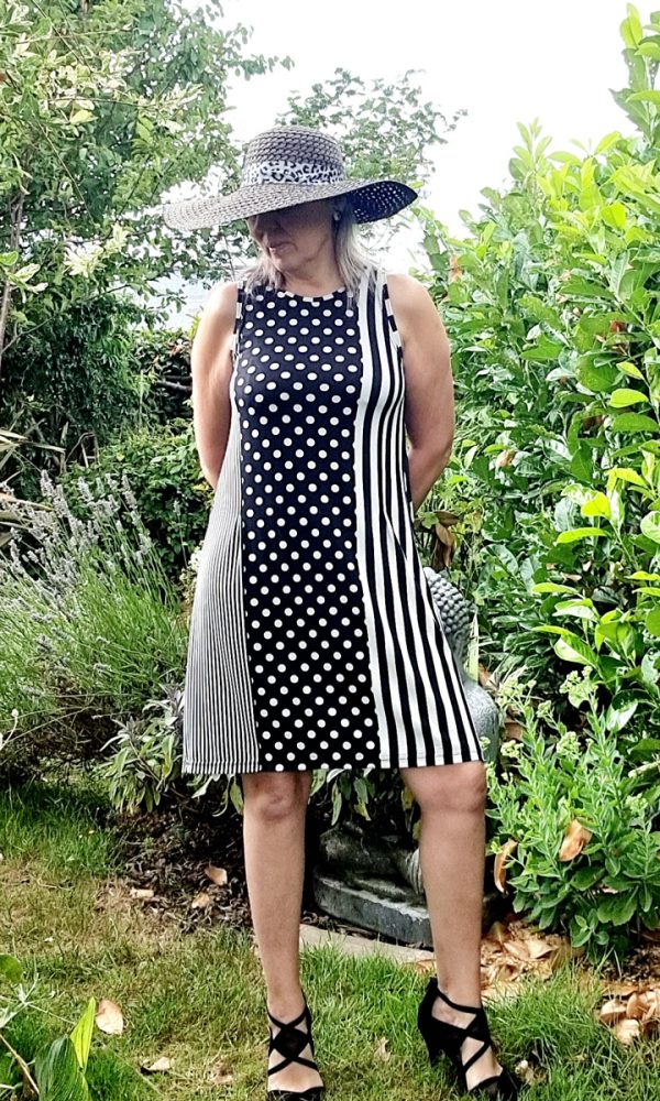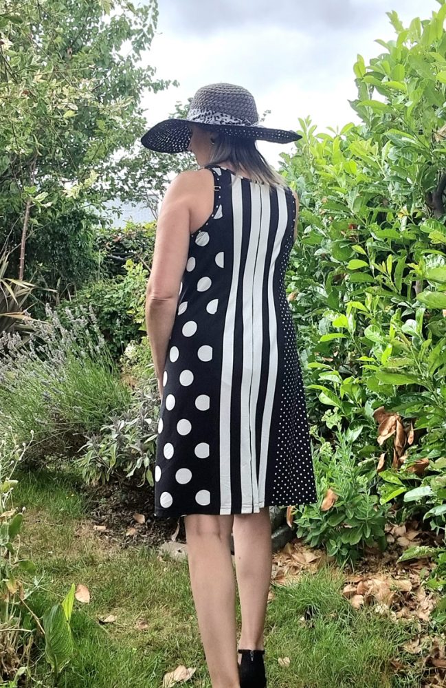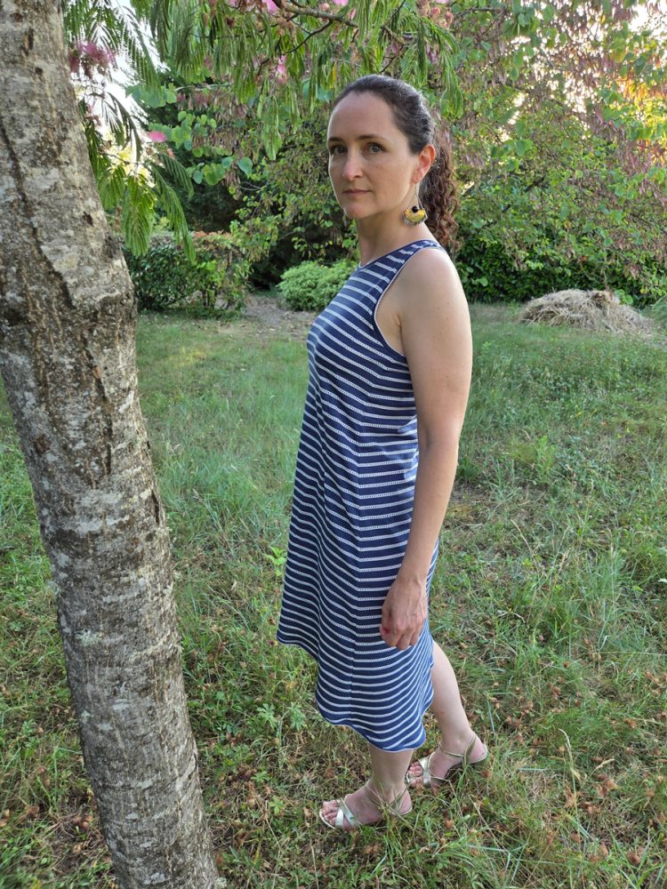 - Les 3 versions incluses par tranche de taille : robe asymétrique, robe droite et top