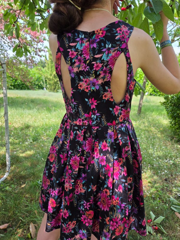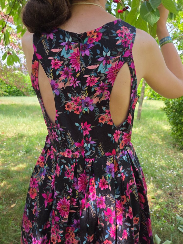 Le dos se distingue par de délicates découpes, apportant une touche originale tout en restant confortable et facile à porter. La fermeture éclair invisible au dos assure une finition professionnelle et discrète.